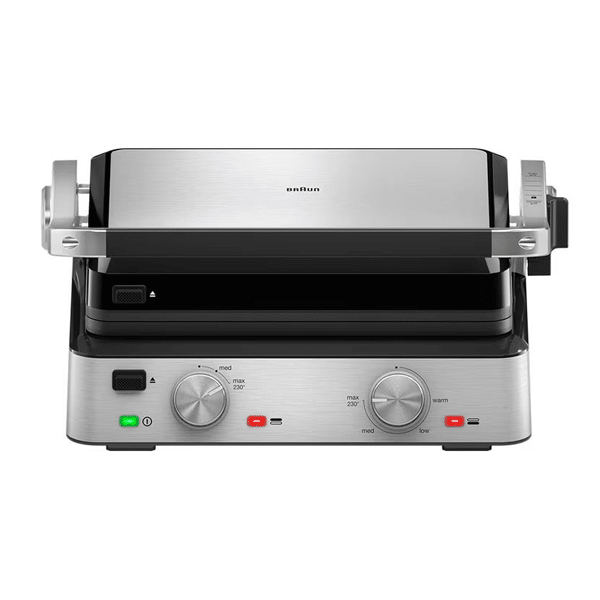 Braun MultiGrill 7 CG7020 este un grill electric de contact puternic, conceput pentru prepararea rapidă și uniformă a cărnii, peștelui, sandwich-urilor și legumelor. Puterea de 2000 W asigură încălzire rapidă, iar plăcile antiaderente detașabile permit atât gătire sănătoasă, cât și curățare ușoară. Designul robust din inox și funcționarea versatilă îl fac potrivit pentru utilizare zilnică în orice bucătărie.