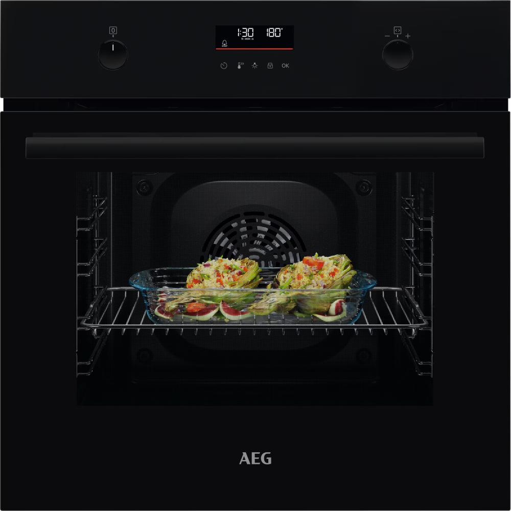 Cuptorul electric incorporabil AEG BPK53516XB din seria SurroundCook este conceput pentru a oferi rezultate uniforme și control precis al gătitului. Sistemul SurroundCook® utilizează un ventilator cu element de încălzire circular pentru a distribui căldura uniform în întreaga cavitate, permițând coacerea simultană pe mai multe niveluri fără a compromite rezultatele.