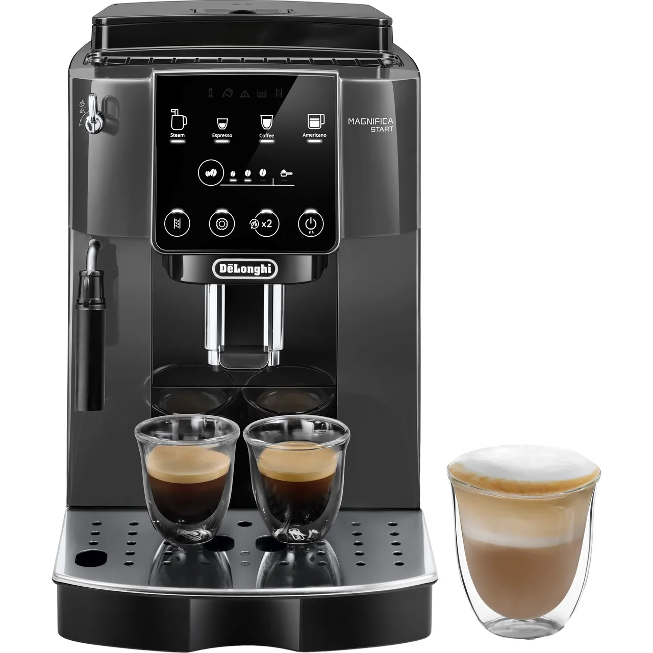 Espressorul automat De’Longhi Magnifica Start ECAM220.22.GB este destinat preparării zilnice a cafelei, fiind echipat cu pompă de 15 bari și râșniță integrată pentru utilizarea cafelei boabe sau măcinate. Operarea este simplă și intuitivă, fiind o soluție practică pentru uz rezidențial. Finisajul gri cu negru și designul compact permit integrarea ușoară în orice bucătărie.
