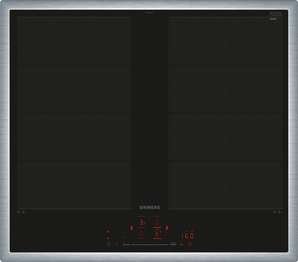 Plita cu inductie Siemens EX675LXC1E din gama iQ700 este conceputa pentru utilizatorii care doresc flexibilitate avansata, control intuitiv si performanta ridicata. Tehnologia flexInduction permite combinarea zonelor de gatit pentru a adapta suprafata in functie de dimensiunea vaselor, oferind libertate maxima in utilizare.