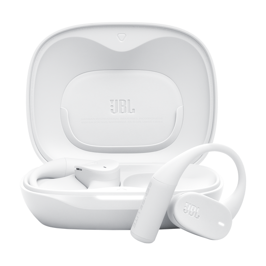 JBL Sense Lite sunt căști wireless open-ear în nuanță albă, cu design ergonomic și tehnologie audio JBL OpenSound, oferind autonomie extinsă și patru microfoane pentru apeluri clare — ideale pentru lifestyle și muzică.