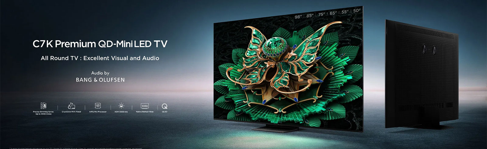 Modelul TCL 75C7K face parte din seria premium C7K și utilizează tehnologia QD-Mini LED, care combină iluminarea Mini LED cu Quantum Dot pentru culori intense, luminozitate ridicată și contrast precis. Panoul de 75 inch (189 cm) oferă rezoluție 4K Ultra HD, iar procesorul AiPQ Pro optimizează imaginea prin algoritmi AI pentru claritate și culori naturale.