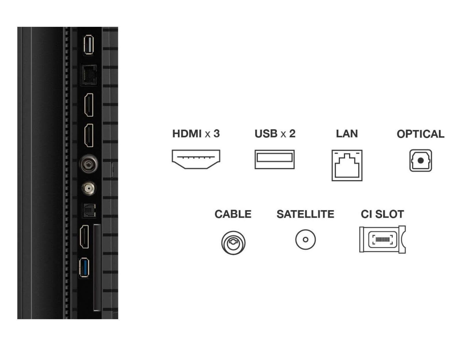 Porturi: 3 × HDMI 2.1, USB, RJ-45, CI+
