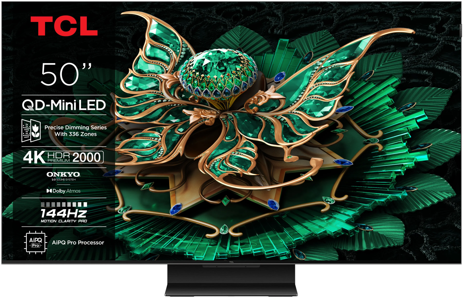 Modelul TCL 50C7K face parte din seria premium C7K și utilizează tehnologia QD-Mini LED, combinând iluminarea Mini LED cu Quantum Dot pentru culori intense și contrast ridicat. Ecranul de 50 inch oferă rezoluție 4K Ultra HD, iar procesorul AiPQ Pro optimizează imaginea prin algoritmi AI pentru claritate și detalii îmbunătățite.